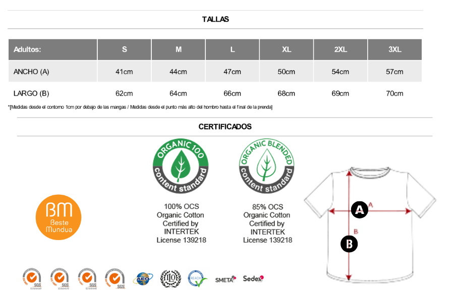 El corte entallado abraza el cuerpo sin limitar el movimiento, ofreciendo comodidad y estilo en una sola pieza. El cuello redondo en canalé 1×1, las cubrecosturas al tono y la calidad del algodón orgánico certificado OCS garantizan durabilidad y coherencia con un mensaje que pide responsabilidad.