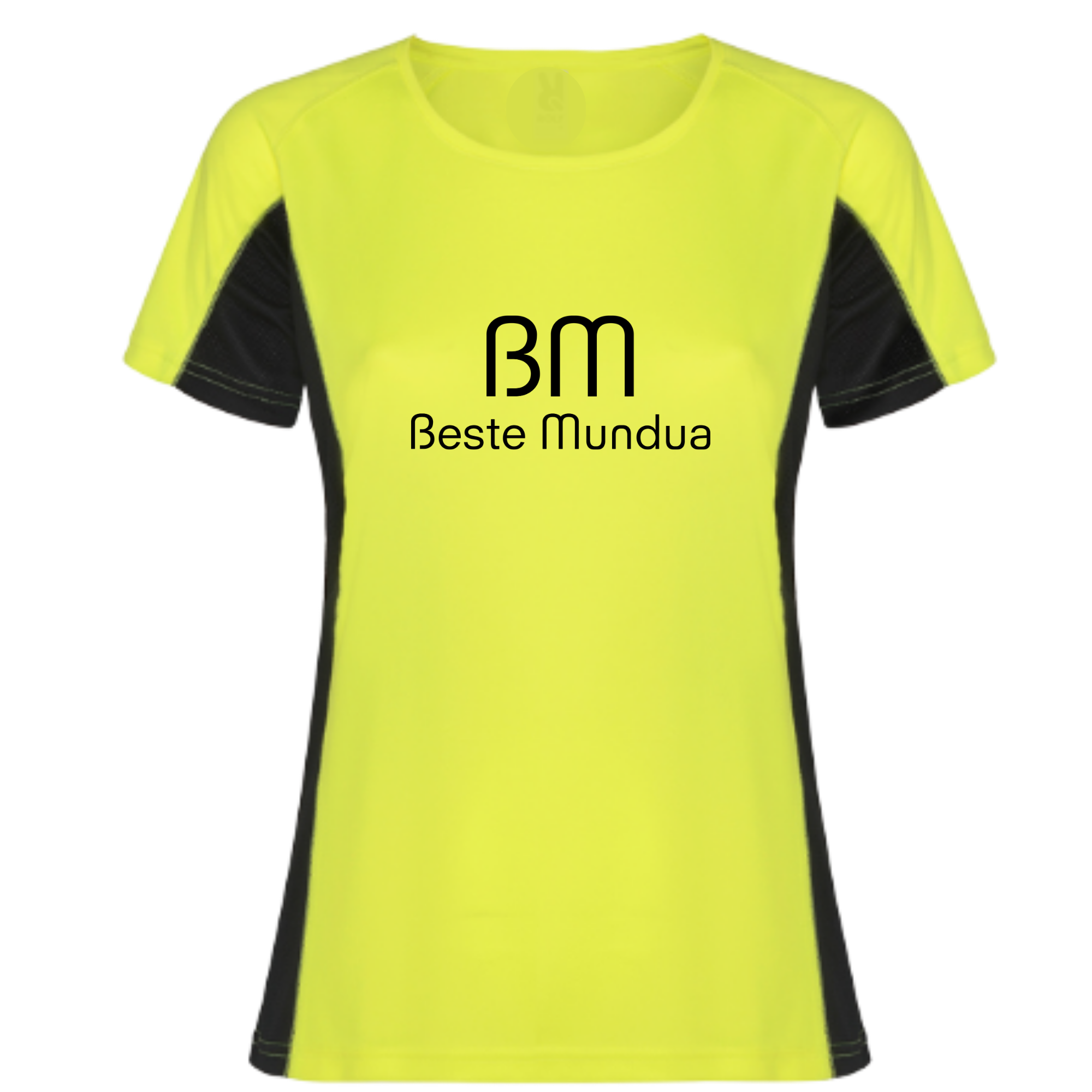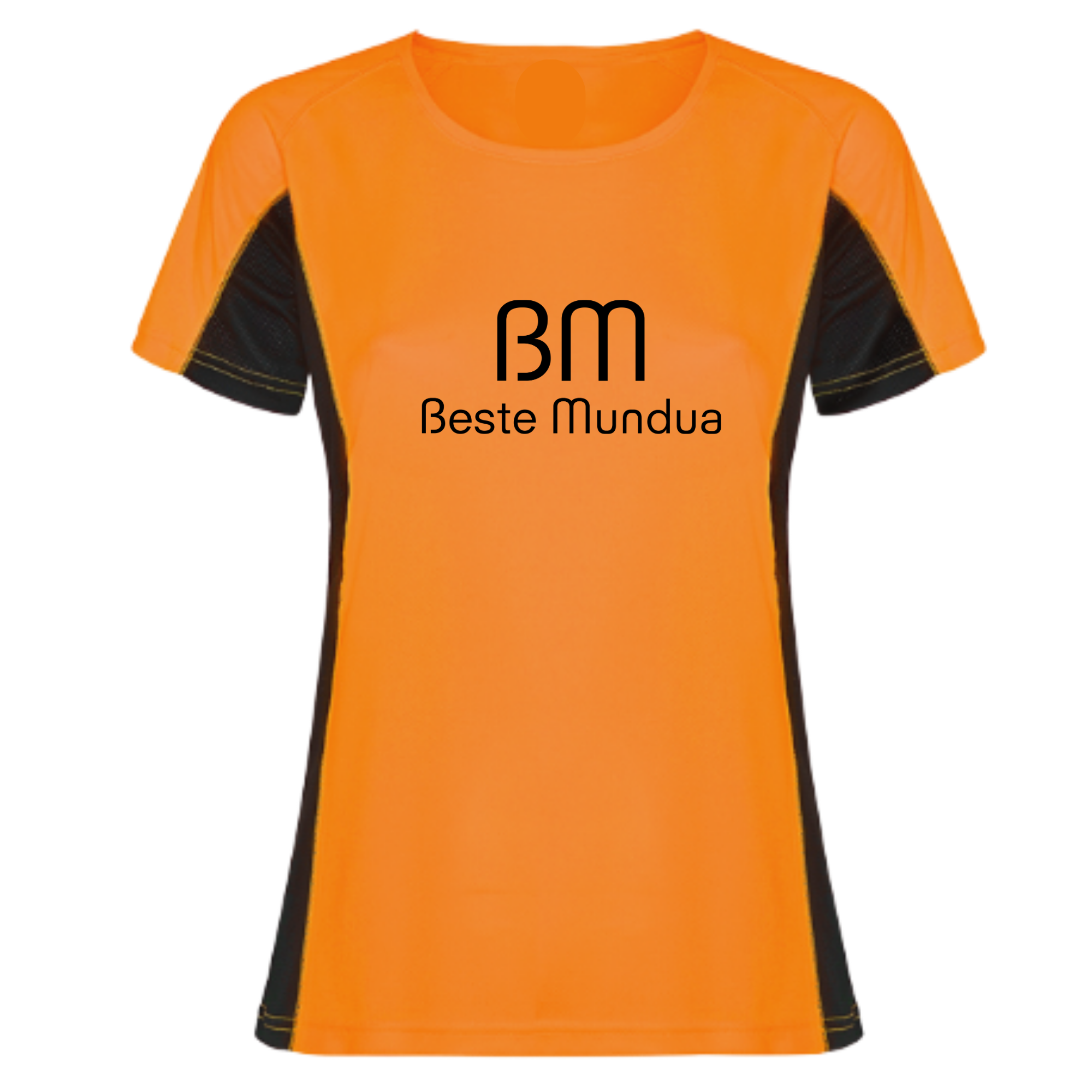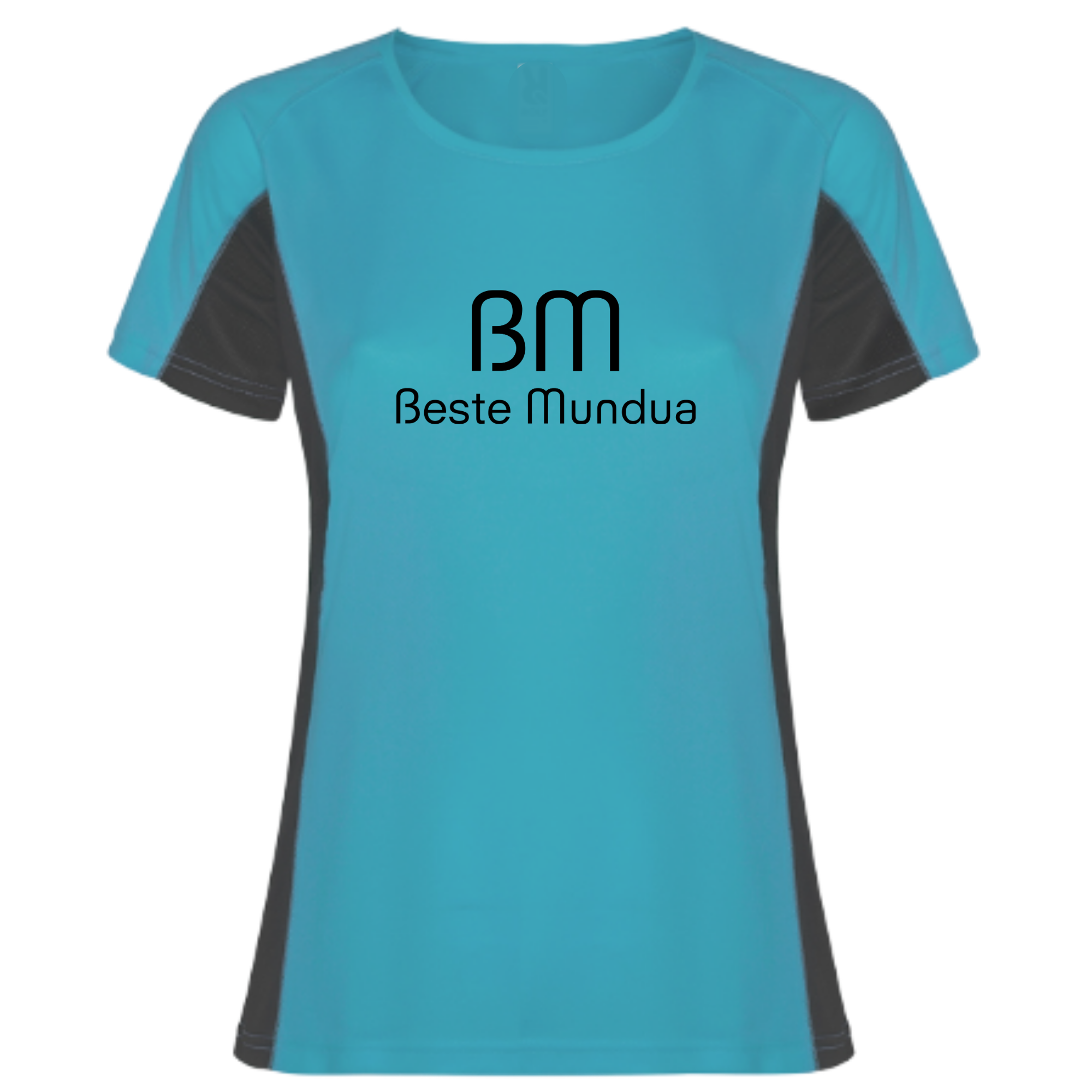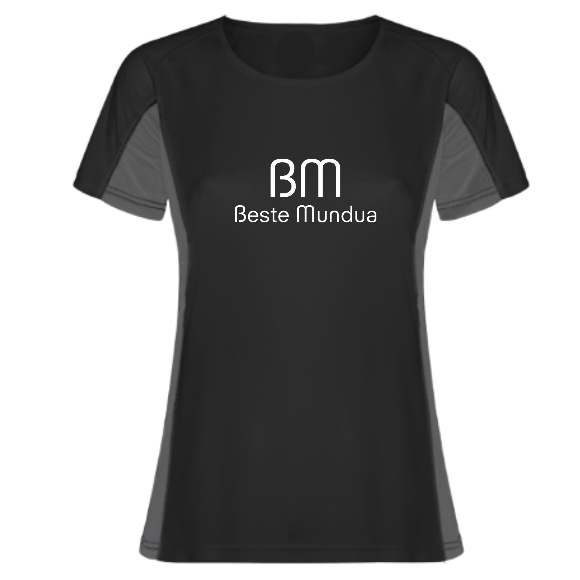 En el pecho, el logo de Beste Mundua. Limpio, firme, auténtico. Un símbolo que no busca protagonismo, pero lo tiene. Representa tu fuerza callada, tu constancia, esa determinación que aparece cuando te atas las zapatillas y decides que hoy también sales a dar lo mejor de ti.