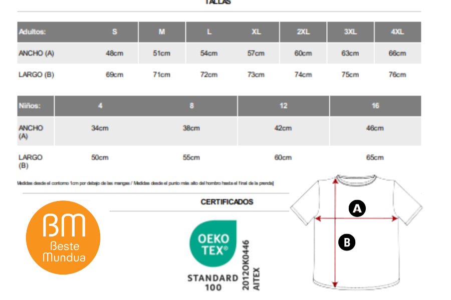 MEDIDAS DESDE EL CONTORNO 1 CM POR DEBAJO DE LAS MANGAS/ MEDIDAS DESDE EL PUNTO MÁS ALTO DEL HOMBRO HASTA FINAL DE LA PRENDA