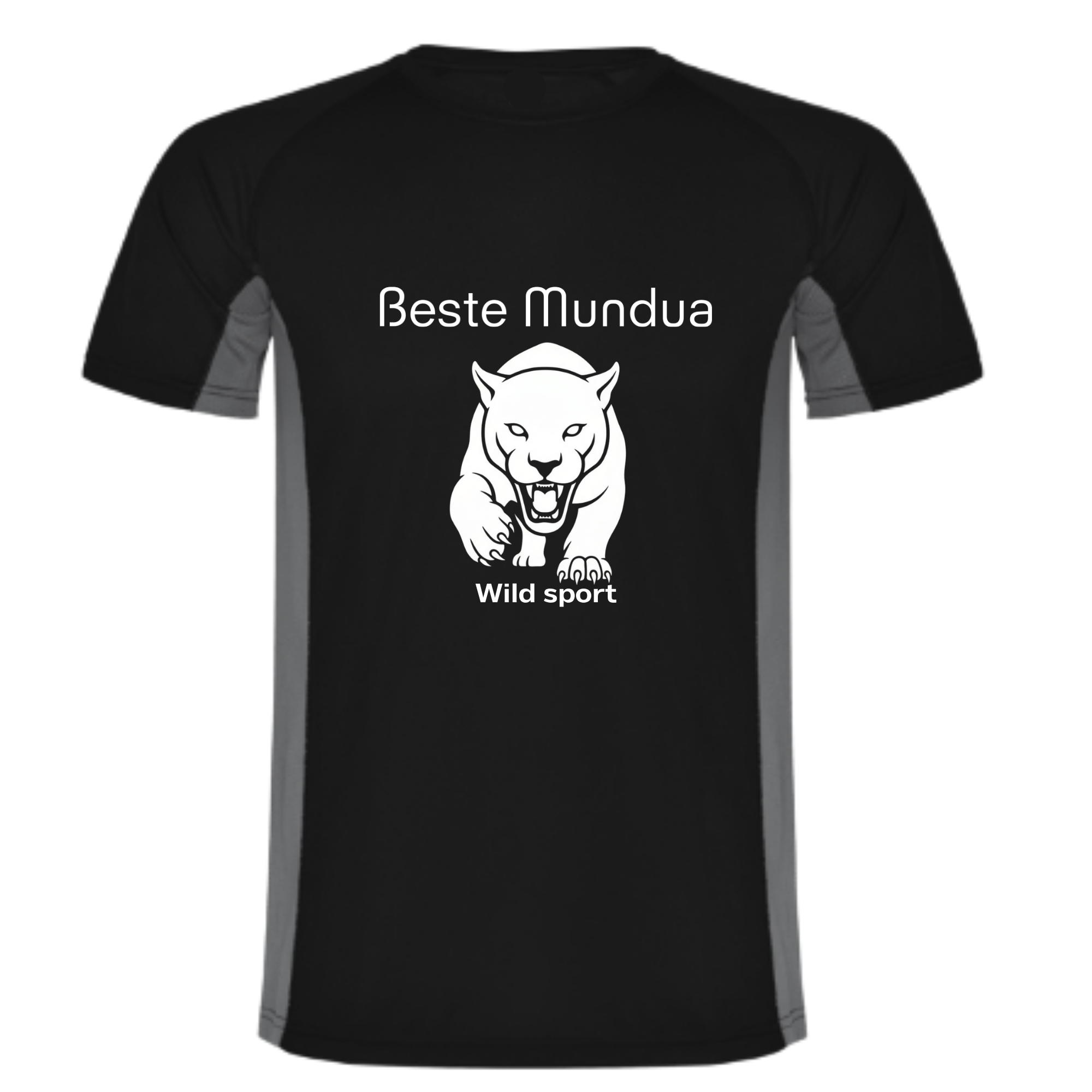 Esta camiseta deportiva, ilustrada con el lobo indomable de Beste Mundua y el ágil puma de Beste Mundua no solo acompaña tus entrenamientos: los lidera. Su tejido ligero y transpirable trabaja en silencio mientras tú haces ruido con tus resultados. Cada fibra está pensada para una sola cosa: mantenerte seco, cómodo y decidido.