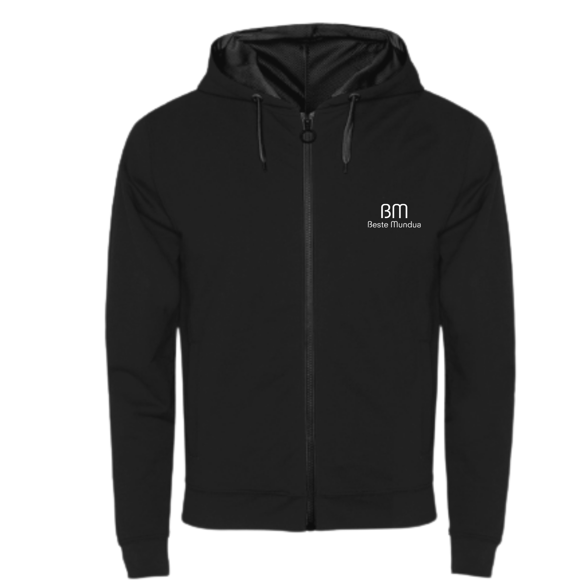 Esta sudadera unisex con cremallera frontal y capucha de Beste Mundua está pensada para quienes buscan comodidad sin renunciar al carácter. Su diseño técnico, ligero y versátil te envuelve con esa sensación que solo la buena ropa outdoor sabe ofrecer: libertad para moverte y calma para mantener tu rumbo.
